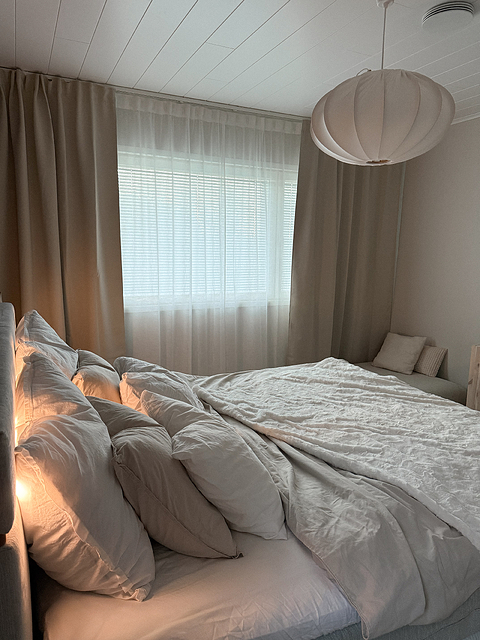 Läpikuultavat verhot vapauttavat huoneisiin juuri sopivasti pehmeää luonnonvaloa. (kuva: Roosa Selin)