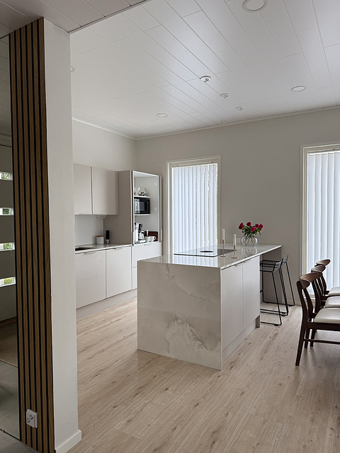 - Luonnonmateriaalit, kuten puu, tuovat kodikkuutta ja vaaleat sävyt tekevät tilasta ilmavan, Selin sanoo.